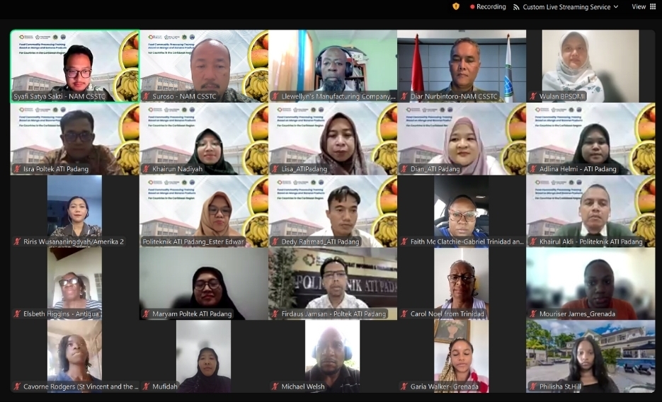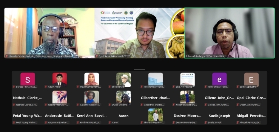 As part of an ongoing initiative to strengthen South-South Cooperation and promote agri-based value addition, the Non-Aligned Movement Centre for South-South Technical Cooperation (NAM CSSTC), in collaboration with Ministry of Industry of Indonesia, the Ministry of Foreign Affairs of Indonesia, and Polytechnic ATI Padang, successfully conducted an online international training on Dried Mango Processing and Mango Jelly Products during “Food Commodity Processing Training Based on Mang and Banana Products”.