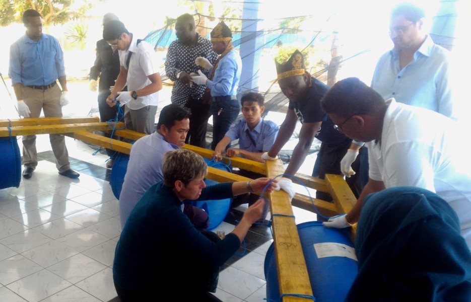 During the trainings, experts from the BFTC shared experience on eco-friendly fishing gear, fish processing and utilisation of aquaculture developed in Indonesia. BFTC Director, Achmad Subijakto conveyed that participants were trained for two fields: (1) Fish Catch, through method of creating and operating eco-friendly fishing gear (fishing pot); and (2) Aquaculture, through creation of cage aquaculture and nile tilapia aquaculture, ranging from fingerling, feeding and health management.