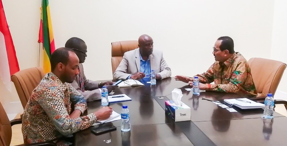 Jakarta, Indonesia – Director Ronny Prasetyo Yuliantoro, accompanied by Assistant Director for Programme Niken Supraba, paid a courtesy visit to the Federal Democratic Republic of Ethiopia Ambassador, H.E. Admasu Tsegaye Agidew, on January 14th, 2020. The Non-Aligned Movement Centre for South-South Technical Cooperation (NAM CSSTC)-Ethiopia partnership potential was addressed on the visit.