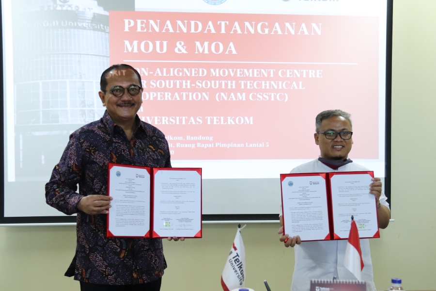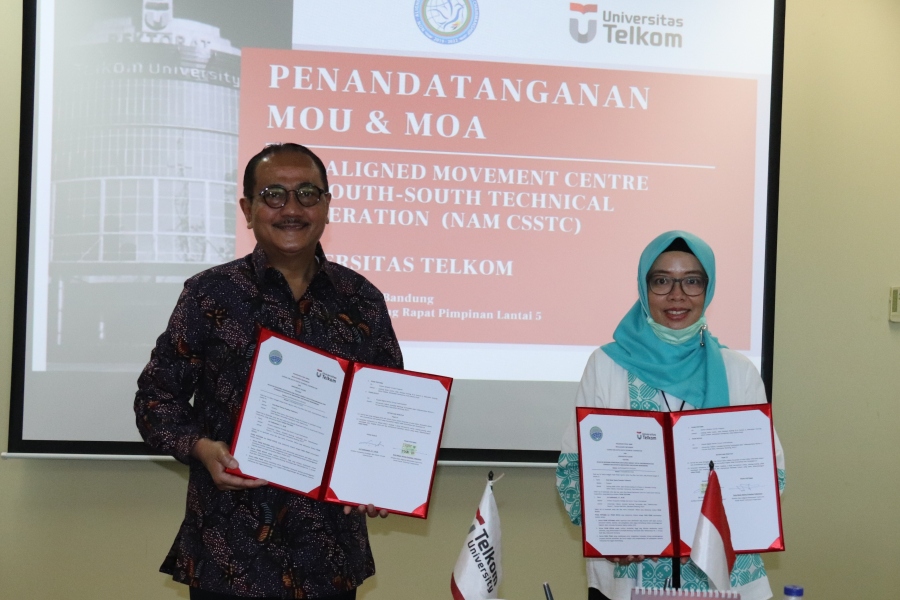 The agreement was signed by Director for NAM CSSTC, Ronny Prasetyo Yuliantoro, the Telkom University Chancellor, Prof. Dr. Adiwijaya, and Director for Strategic Partnership and International Office of Telkom University, Lia Yuldinawati, S.T., M.M.. Three other NAM CSSTC delegates were present, including the NAM CSSTC Legal Consultant / Functional Diplomat at the Directorate of Technical Cooperation of the Ministry of Foreign Affairs of the Republic of Indonesia, Diar Nurbintoro, Assistant Director for Programme, Niken Supraba, and Information and Network Staff, Suroso.