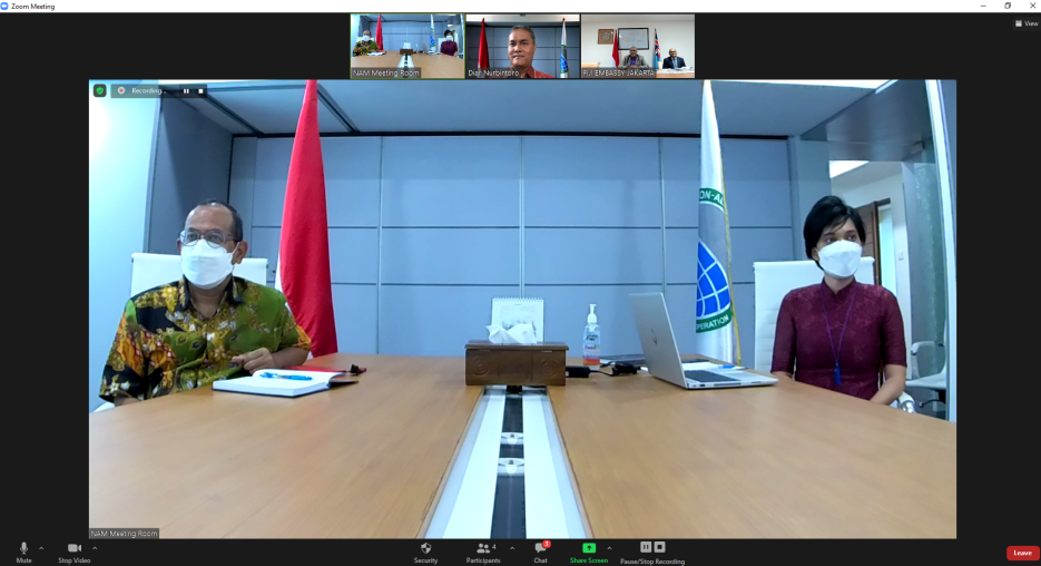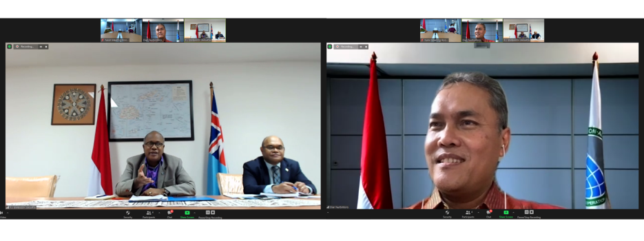 Diar Nurbintoro, Acting Director of the Non-Aligned Movement Centre for South-South Technical Cooperation (NAM CSSTC) had a virtual Courtesy Call to the Ambassador of the Republic of Fiji Amena Yauvoli on 4th of March, 2021. The meeting reviewed the prospects for technical cooperation between the Government of the Republic of Fiji and NAM CSSTC, particularly in the agriculture sector. The Ambassador of Fiji was accompanied by Counsellor of the Fiji Embassy, Isaac Grace during the meeting.