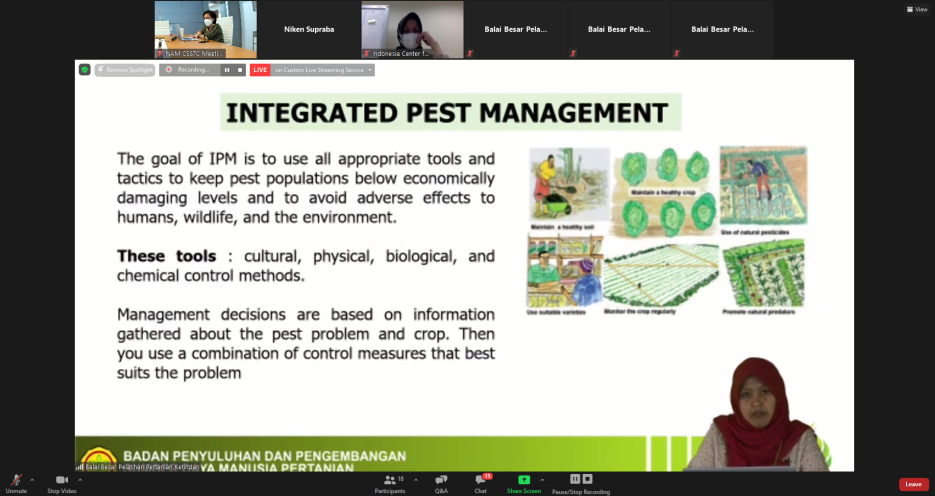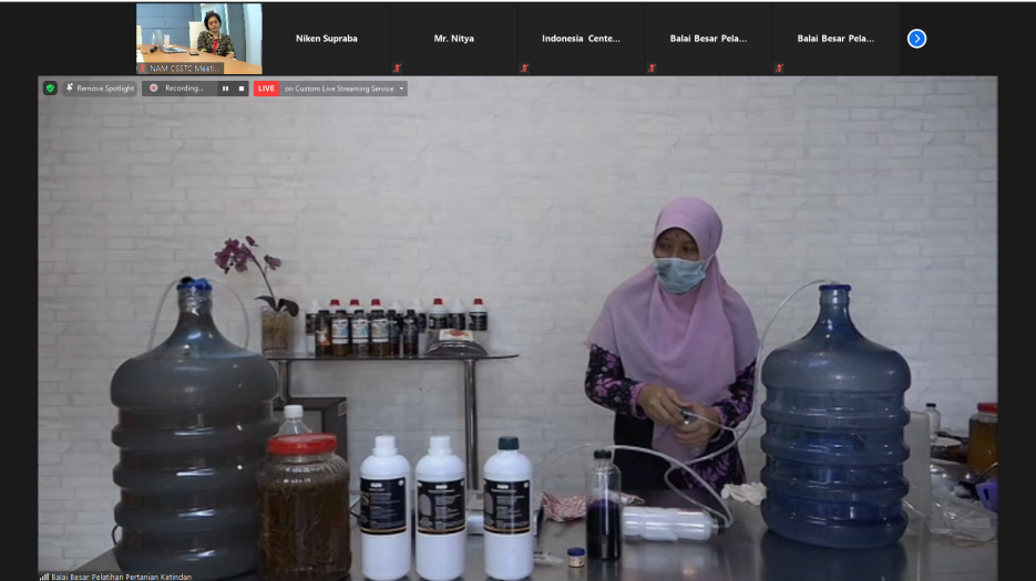 NAM CSSTC provided 4 prominent IPDM-specific and sustainable agriculture, agricultural systems and technology trainers/facilitators from the Ministry of the Agriculture Republic of Indonesia and Bangladesh Agricultural University. The participants were generally discussed on pests and disease recognition, pre-harvest and post-harvest management, as well as the effective plant protection approach for pests and diseases management. Through lectures, discussions, and video examples, the participants were able to learn the material.