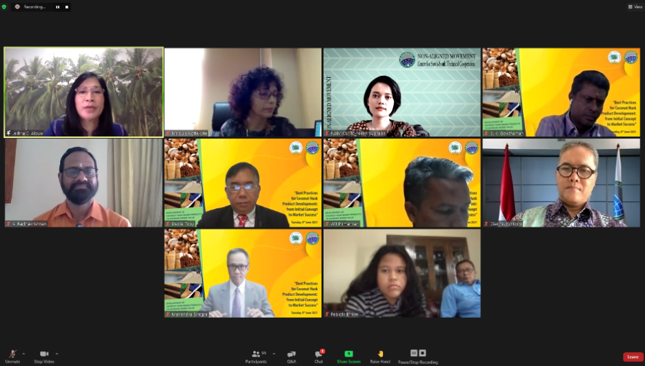 On 8th of June 2021, webinar entitled ‘The Development of Coconut Husk-Based Products to Increase Added Value in the Period of Volatility, Uncertainty, Complexity and Ambiguity (VUCA)’ was organised by the Non-Aligned Movement Centre for South-South Technical Cooperation (NAM CSSTC) and International Coconut Community (ICC). This webinar was a continuation of the Memorandum of Understanding between on 24th of July 2020, an agreement to enhance coconut farmers’ skills and expertise in developing countries in the production of value-added coconut products.