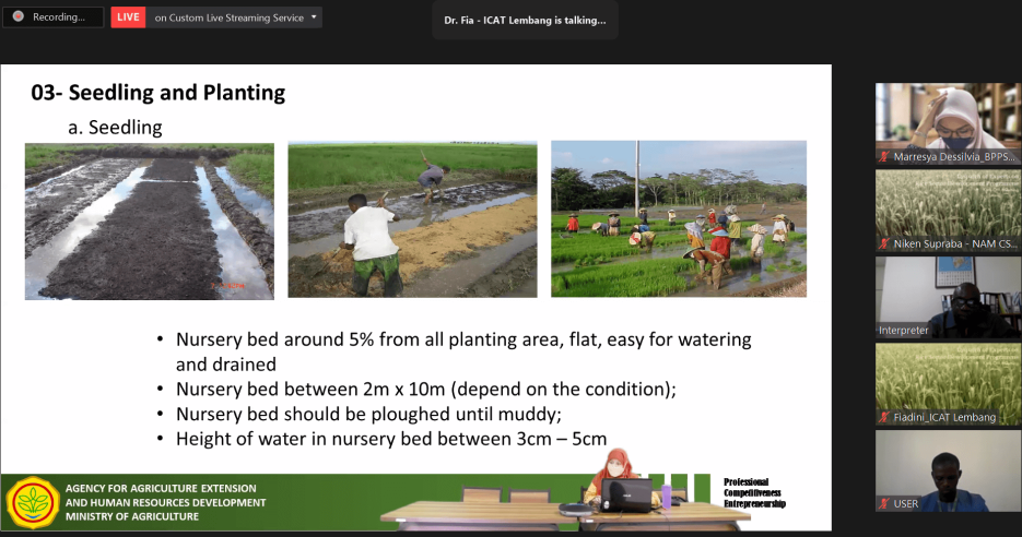 Following a series of discussions between the Non-Aligned Movement Centre for South-South Technical Cooperation (NAM CSSTC), the Embassy of the Republic of Indonesia in Dakar, the Ministry of Agriculture of the Republic of Indonesia (MoA), and CV. Karya Hidup Sentosa (KHS), it was agreed to hold a kick-off meeting before a face-to-face training to gather input from Senegal as potential beneficiaries. A virtual kick-off meeting was held on Friday, March 18, 2022.