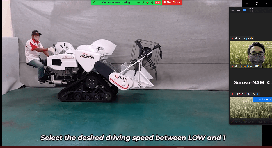 In his presentation, Ramadhan stated that the use of a combine harvester will make the use of Human Resources (HR) more efficient because it only requires two people to operate and reduces planted rice loss to less than 2%.