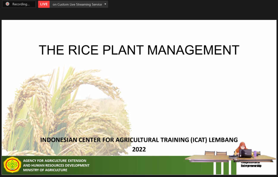 Following the opening, a main session was held, led by Ronny Mucharam of the MoA's Foreign Cooperation Bureau. Dr. Fiadini Putri from the Lembang Indonesian Centre for Agricultural Training was also present as an expert in rice management, as was Ramadhan Putra from CV. KHS as an expert in equipment operation and maintenance.