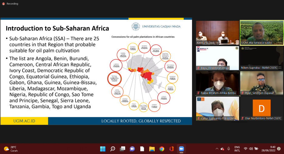 Given the presence of African countries as NAM member countries, Acting Director of NAM CSSTC Diar Nurbintoro expressed his views on the importance of developing the palm oil sector in order to increase palm oil productivity at the national and business levels, as well as to support the sustainable use of natural resources, land, and water in Africa. The initiative of private sector investment in Sub-Saharan Africa in Indonesia were also lauded.