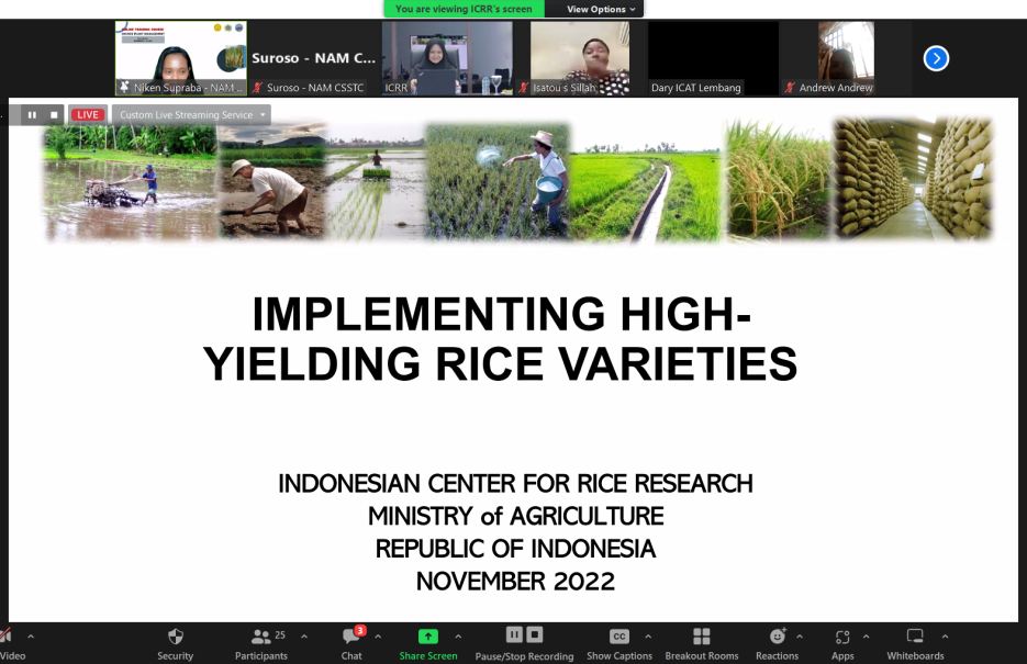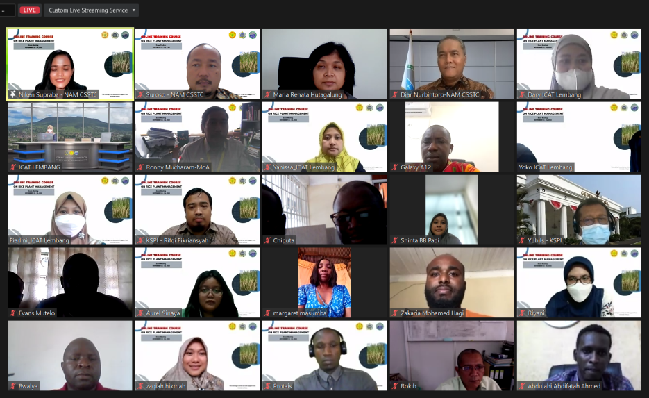 The Non-Aligned Movement Centre for South-South Technical Cooperation (NAM CSSTC), in collaboration with the Ministry of Agriculture and the Ministry of Foreign Affairs of the Republic of Indonesia, and supported by Manobi Africa, hosted a "Online Training Course on Rice Plant Management for African Countries" from November 21 to 24, 2022. Burundi, Gambia, Somalia, Tanzania, and Zambia were among the African countries represented.