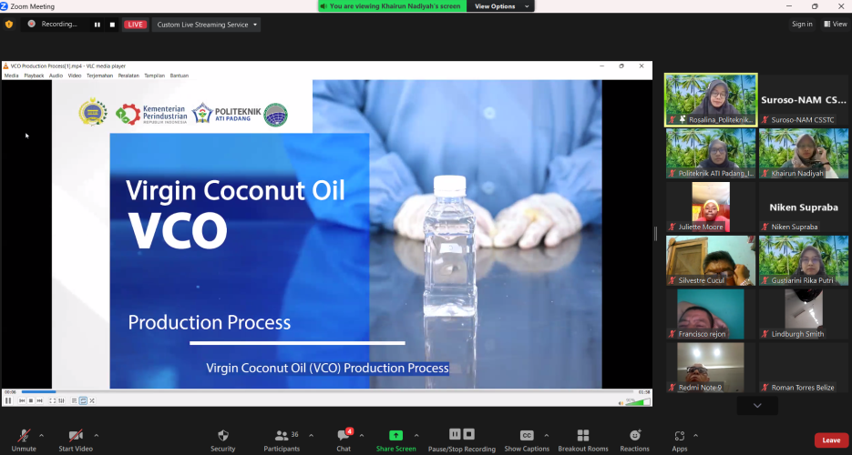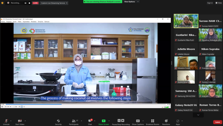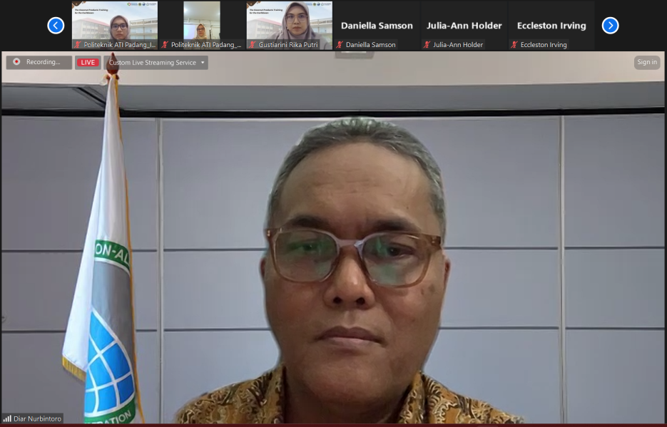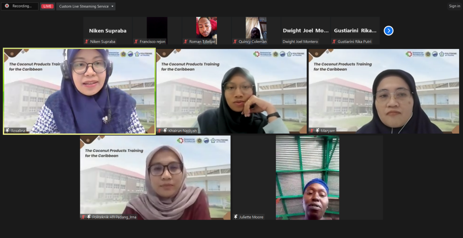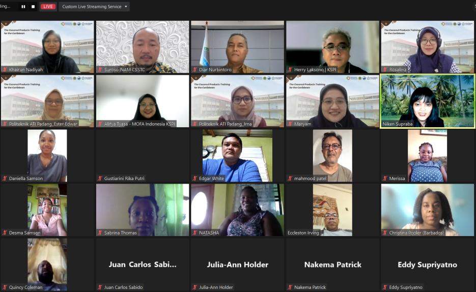 The Caribbean Coconut Product Training Program is a collaborative endeavor supported by Non-Aligned Movement Centre for South-South Technical Cooperation (NAM CSSTC), the Ministry of Foreign Affairs and the Ministry of Industry, with expertise contributions from Politeknik ATI Padang which was held on September 11 and 12, 2023. During the program, Diar Nurbintoro, the Director of the NAM CSSTC, delivered a comprehensive speech underscoring the significance of coconuts in our lives, often referred to as the "tree of life" due to its vital role in survival. Coconuts offer versatile possibilities for industrialization, producing items such as oil and food with the potential for regional and international consumption. The diverse applications of coconut-based products span the realms of food, cosmetics, and even furniture.
