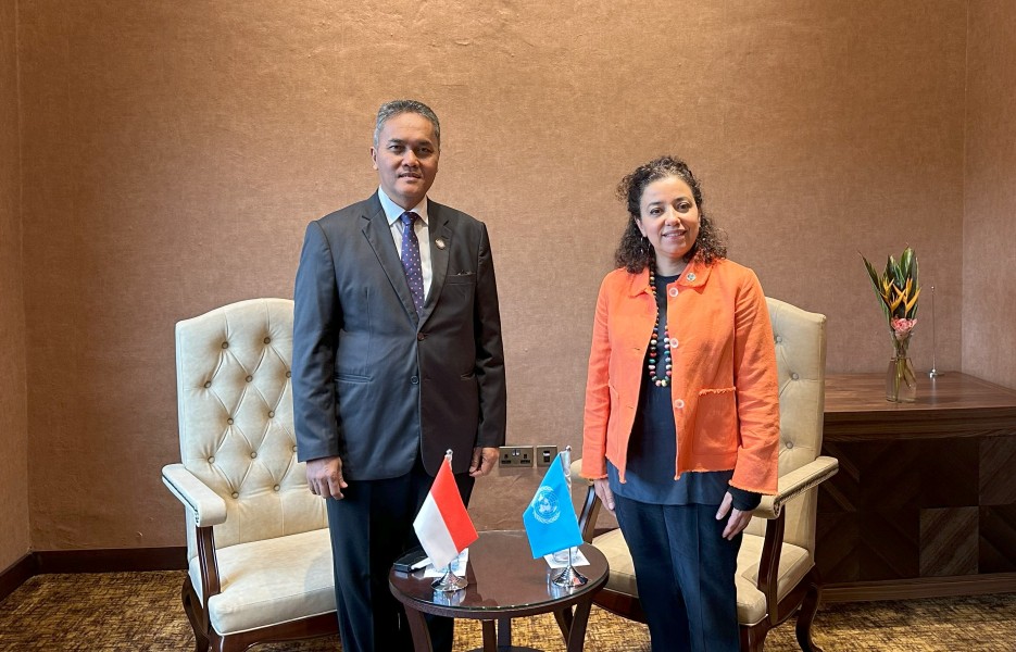 Kampala, Uganda – 22 January 2024, In a significant development during the 19th summit of the Non-Aligned Movement (NAM), the Director of NAM CSSTC, H.E. Ambassador Diar Nurbintoro, had a productive bilateral meeting with the Director of UNOSSC, Ms. Dima Al-Khatib. The focus of their discussions centered around establishing a new and robust relationship between the two organizations, paving the way for collaborative projects that can contribute to the advancement of South-South Cooperation.