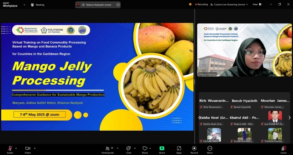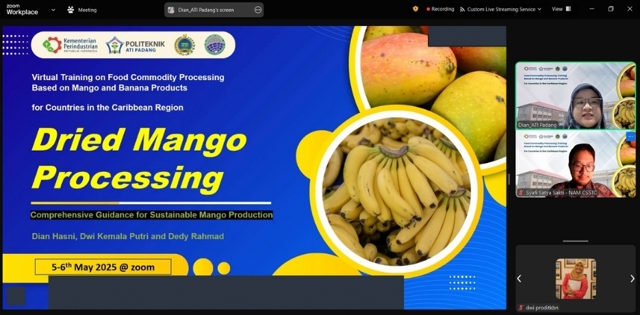 As part of an ongoing initiative to strengthen South-South Cooperation and promote agri-based value addition, the Non-Aligned Movement Centre for South-South Technical Cooperation (NAM CSSTC), in collaboration with Ministry of Industry of Indonesia, the Ministry of Foreign Affairs of Indonesia, and Polytechnic ATI Padang, successfully conducted an online international training on Dried Mango Processing and Mango Jelly Products during “Food Commodity Processing Training Based on Mang and Banana Products”.
